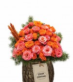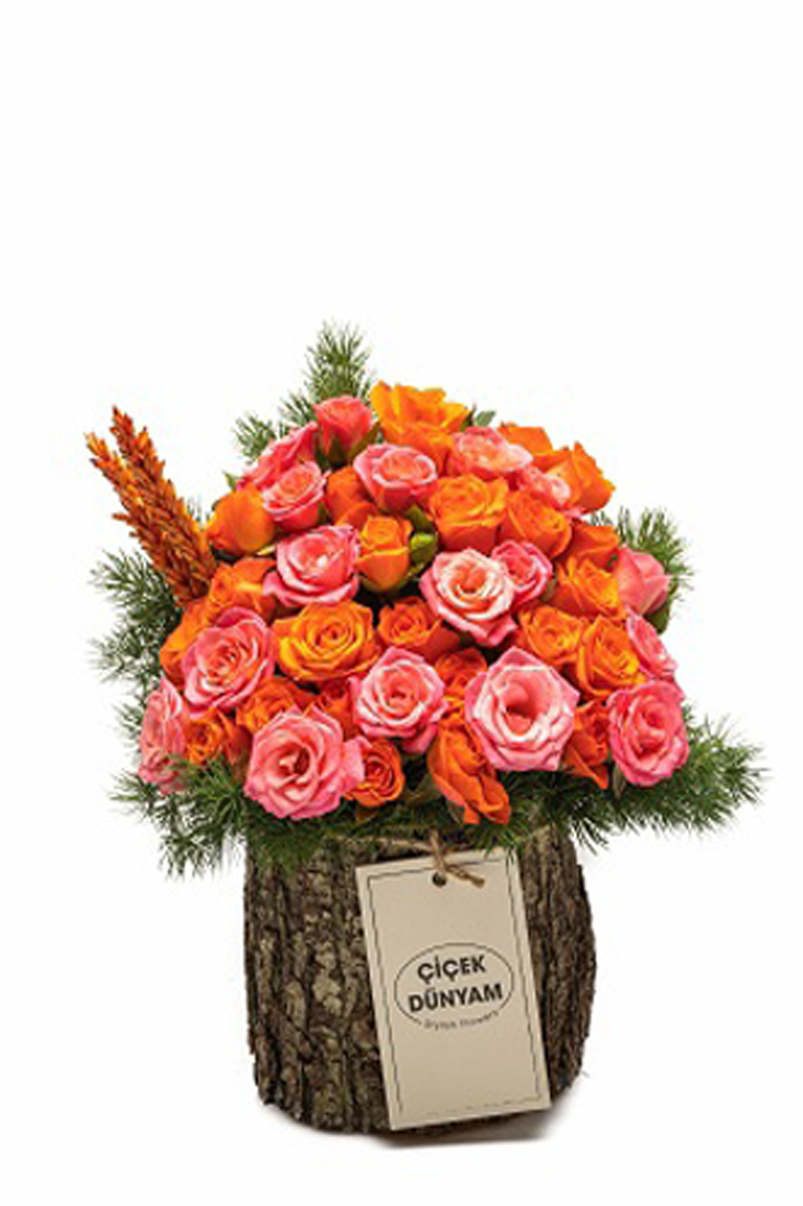 Doğal işlenmemiş kütükte BUNT çardak güller.Ekip arkadaşlarımız tarafından özen ile hazırlanmış olmanın yanı sıra pembe çardak güller ve turuncu çardak güllerin bi aradaki uyumu ile bulunduğunuz ortamın havasına hava katacak ve gözleri sürekli üzerine çekecek bir üründür.
