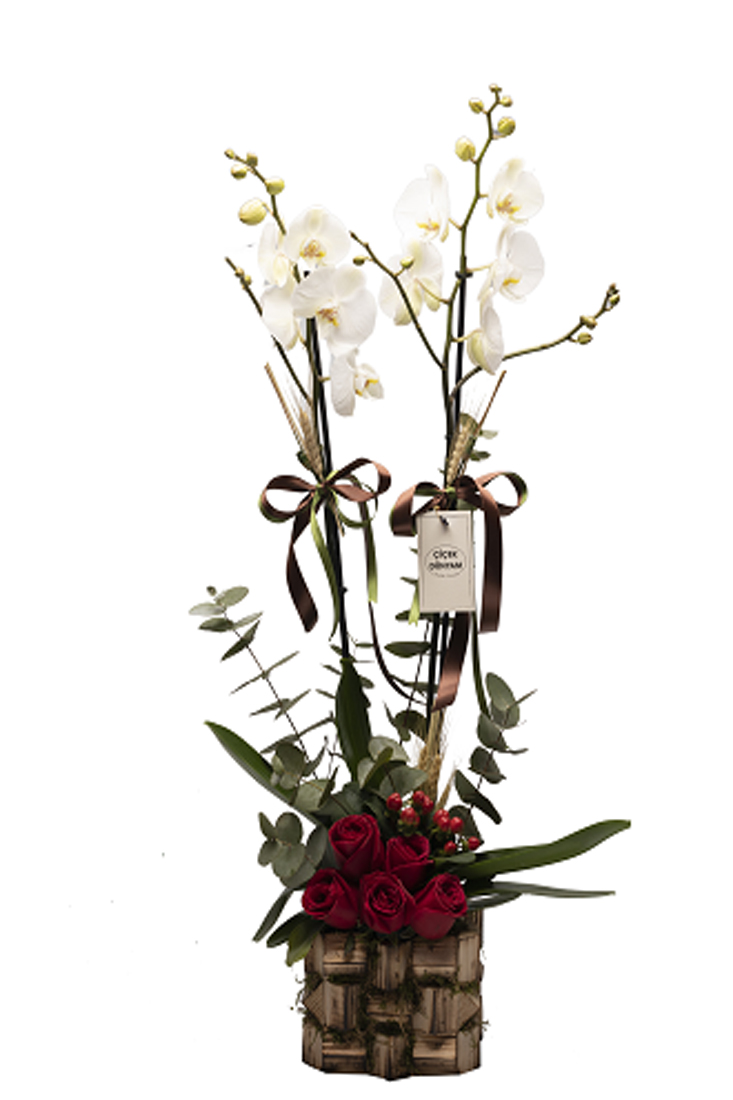 En taze ve şık Beyaz orkide ve kırmızı güllerden oluşan şıklığı ile göz kamaştıran DORA tasarımımız her zevke uygun bir şekilde tasarlanmıştır.Sevdiklerinizi şaşırtmanın ve mutlu etmenin tek adresi ÇİÇEK DÜNYAM siz değerli müşterilerimizin beğenisine ve zevkine sunmaktadır.Hemen çiçeksepetinize ekleyrek siapirşnizii oluşturabilirsiniz.(Saksı seçeneği stok durumuna göre değişkenlik gösterebilir)