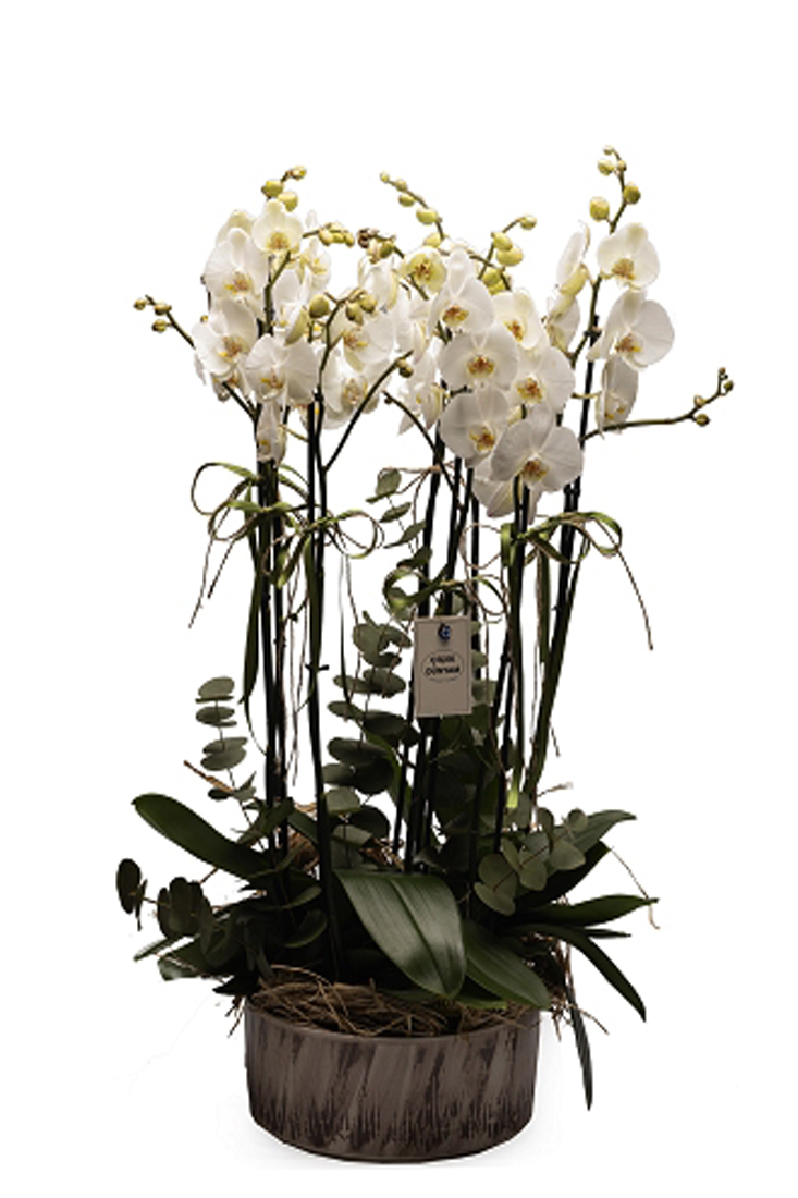 Orkide; asalet ve kendine güvenin simgesidir. Görkemi ve güzelliğiyle büyüleyen, zarafetiyle tüm bakışları üzerine çeviren, girdiği ortama asalet katan büyülü bir kraliçedir beyaz orkide.Metal saksısında gövdesi incilerle süslenmiş 8 adet beyaz orkideden oluşan bu özel aranjman ile sevdiklerinize çok özel bir jest yapın.
