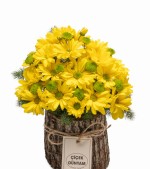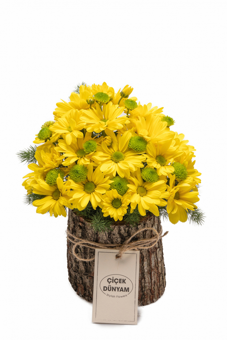 İşlenmemiş ahşap kütük üzeri çalışılmış MARGUERİTE PAPATYALAR.Profesyonel ekbimizce hazırlanan ürünümüz sıcaklık ve doğallığın baş yapıtı halini almaktadır.Sevdikleriniz için yada kendinizi şımartmaya yetecek olan bu ürün ÇİÇEK DÜNYAM Ailesi olarak beğeninize sunulmaktadır.