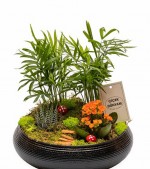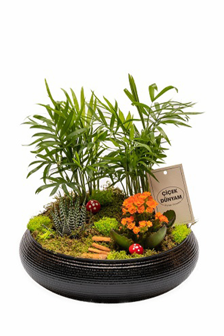 Şamadora Blossom terarium.Siyah dekoratif alt saksısı ile bulunduğu ortama uyum sağlaması oldukça kolay olan bu ürün aynı zamanda terarium grupları arasında da oldukça ilgi ve dikkat çekici bi üründür.Yeni iş,doğum günü,geçmiş olsun vb.gönderim amaçları içinde gayet göz doldurucu statüde bir üründür.Hemen çiçeksepetinize ekleyerek taze çiçeklerle gönderilmini sağlayabilirsiniz.