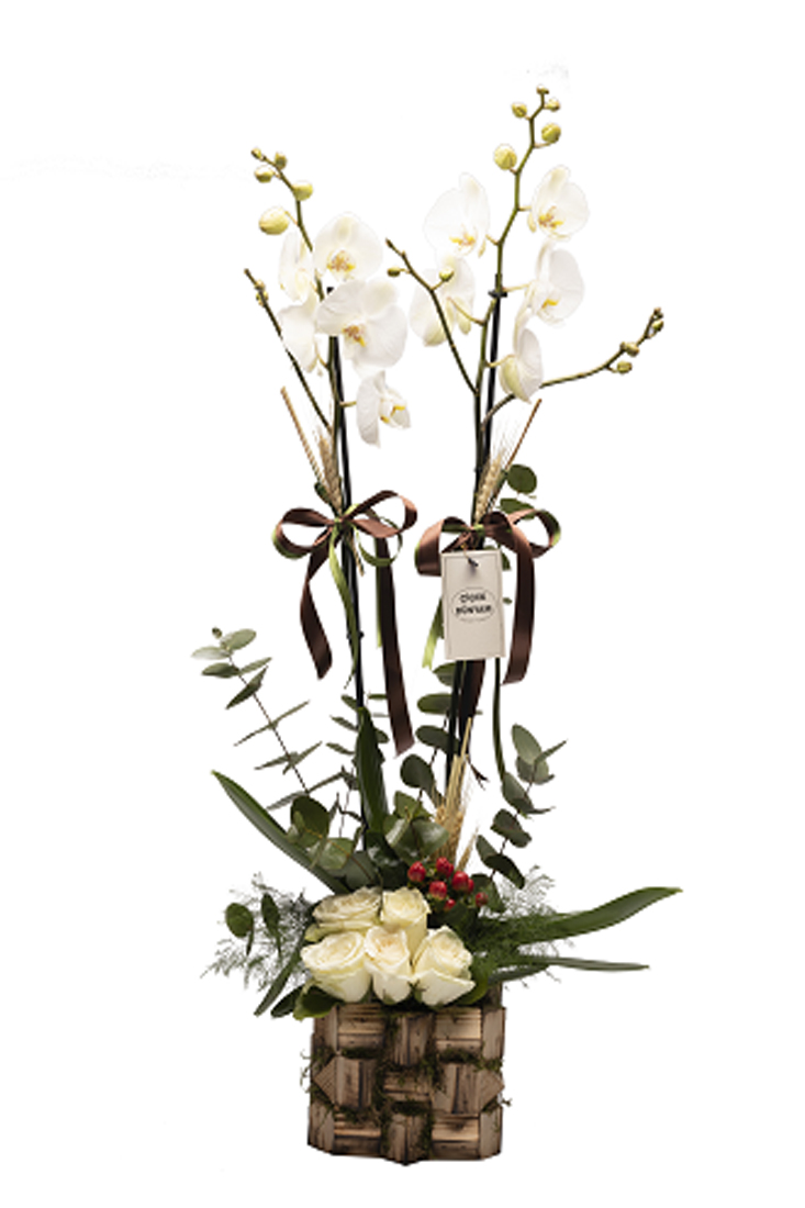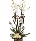 Beyaz orkide şıklığı ve asil rengi ile göz bebeği bir tasarımdır.Bunun yanı sıra beyaz güller eşliğinde oluşu daha hoş ve zarif durmasını sağlamıştır.Adeta beyaz düş olan şık tasarımımız siz değerli müşterilerimizin beğenisine ve zevkine sunulmaktadır.